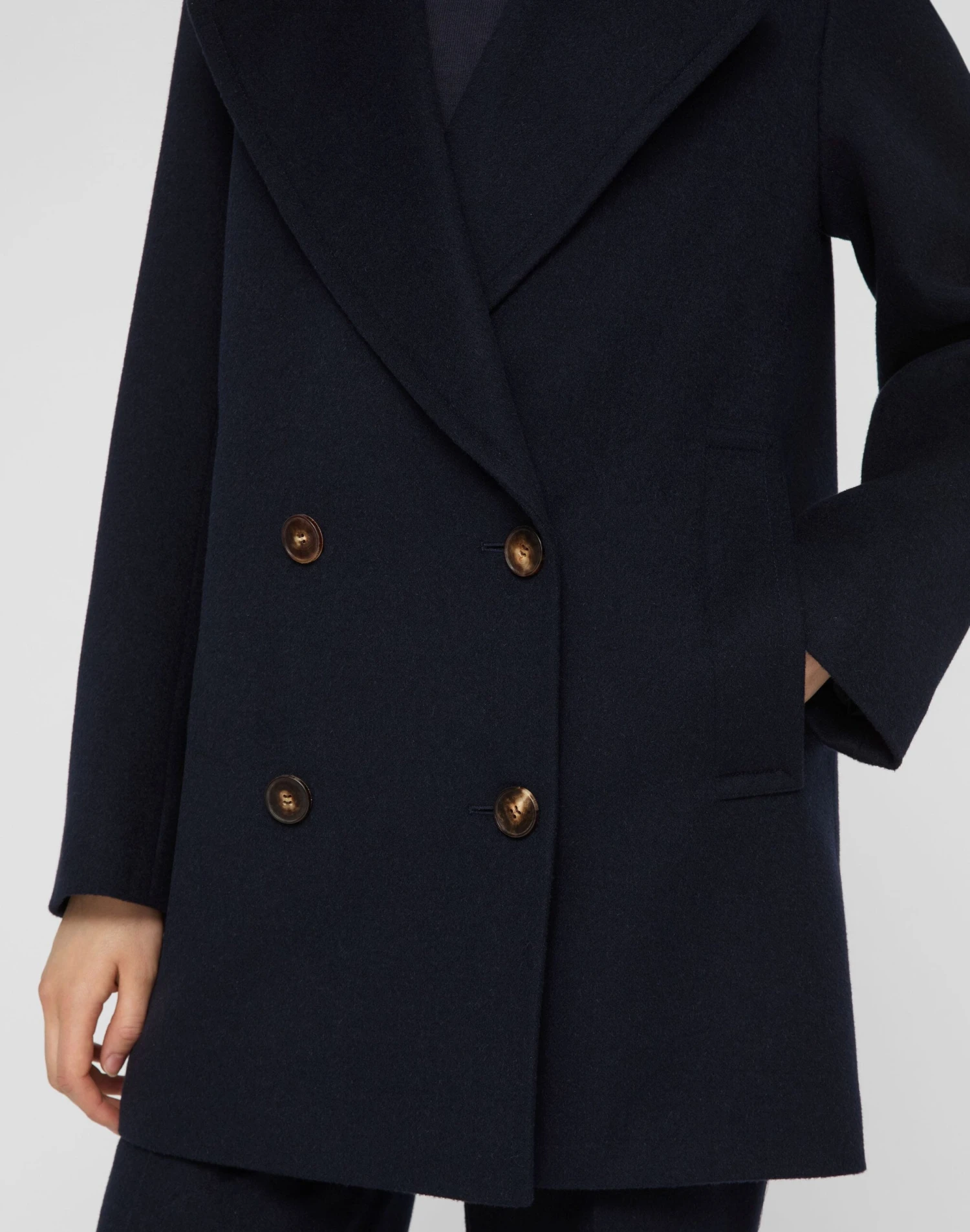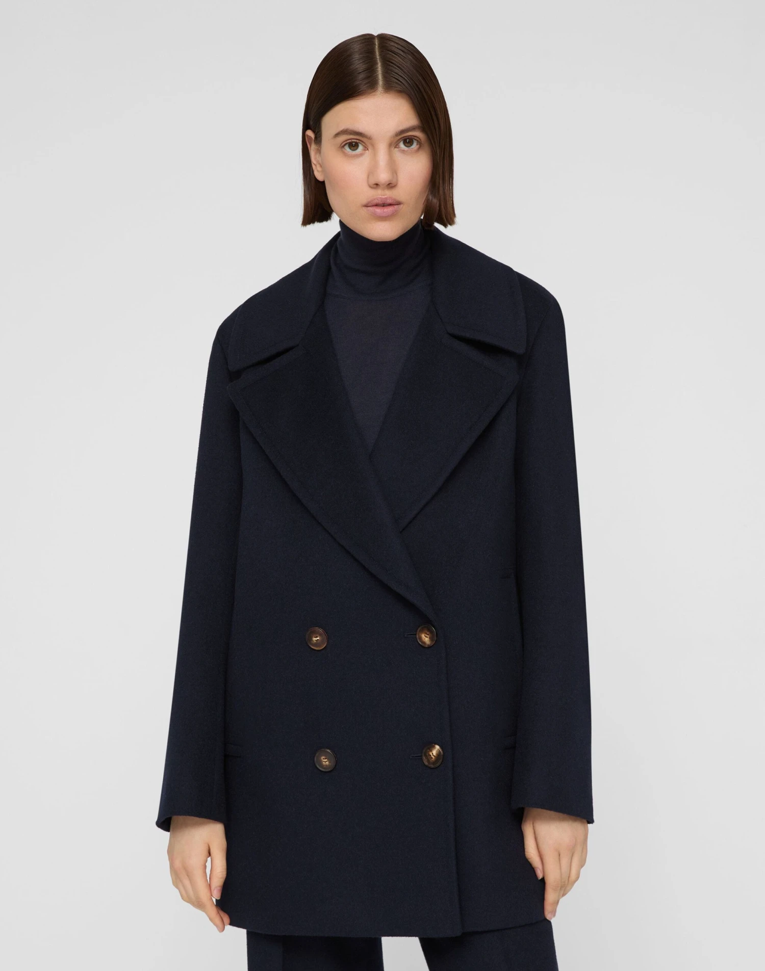 This reimagined double-breasted peacoat is cut straight, with broad shoulders and exaggerated lapels, and is insulated for lightweight warmth. It’s tailored in signature camel hair—sourced from one of Italy’s most renowned textile mills and prized for its luxurious hand, natural softness and breathability.