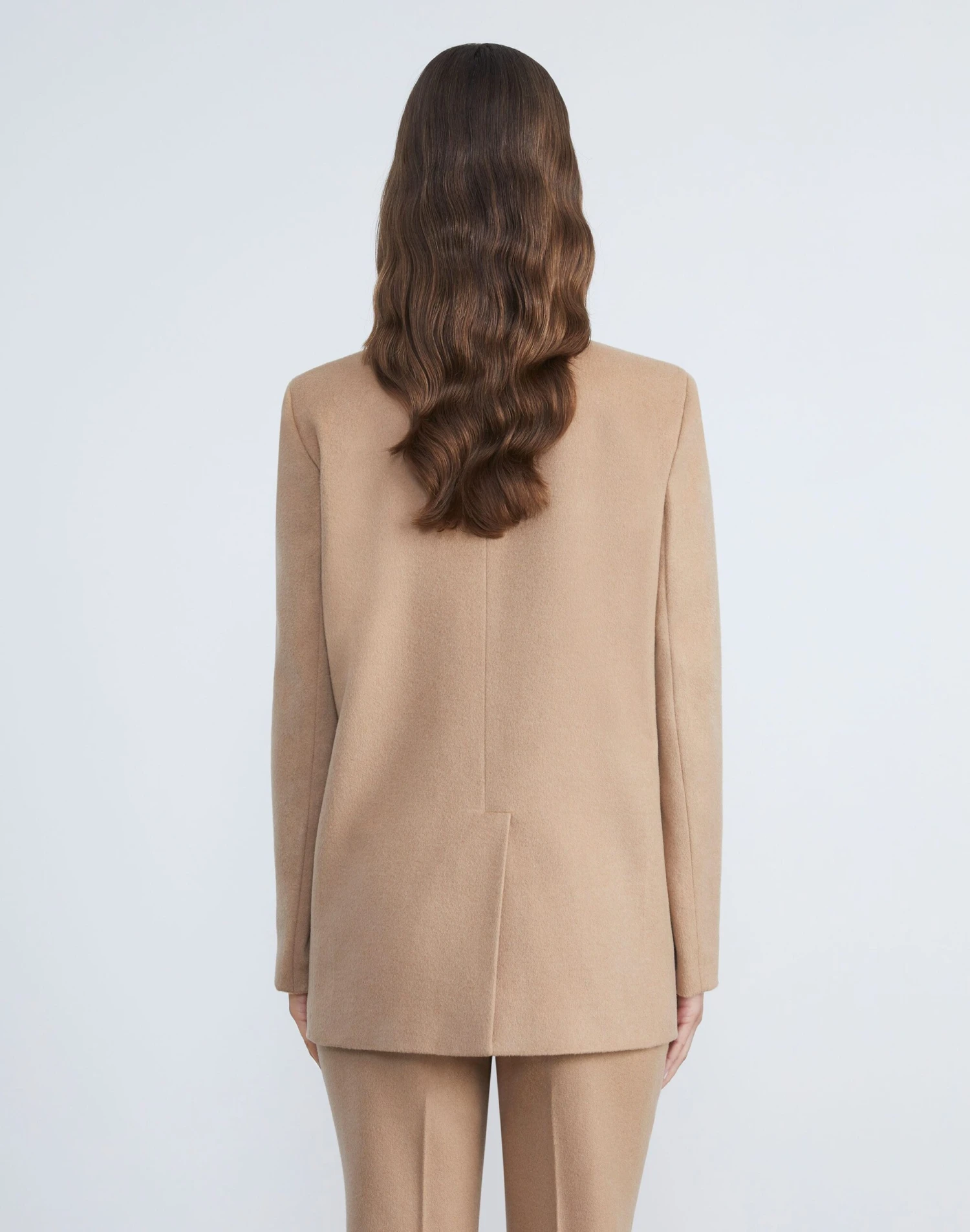 Meticulous craftsmanship and luxurious texture come together in L148’s double-breasted Trinity blazer, impeccably tailored from exceptionally soft, Italian camel hair. The straight silhouette is defined by sharply-cut lapels and structured shoulders, while felted undercollars and bespoke pickstitching lend an elevated finish.