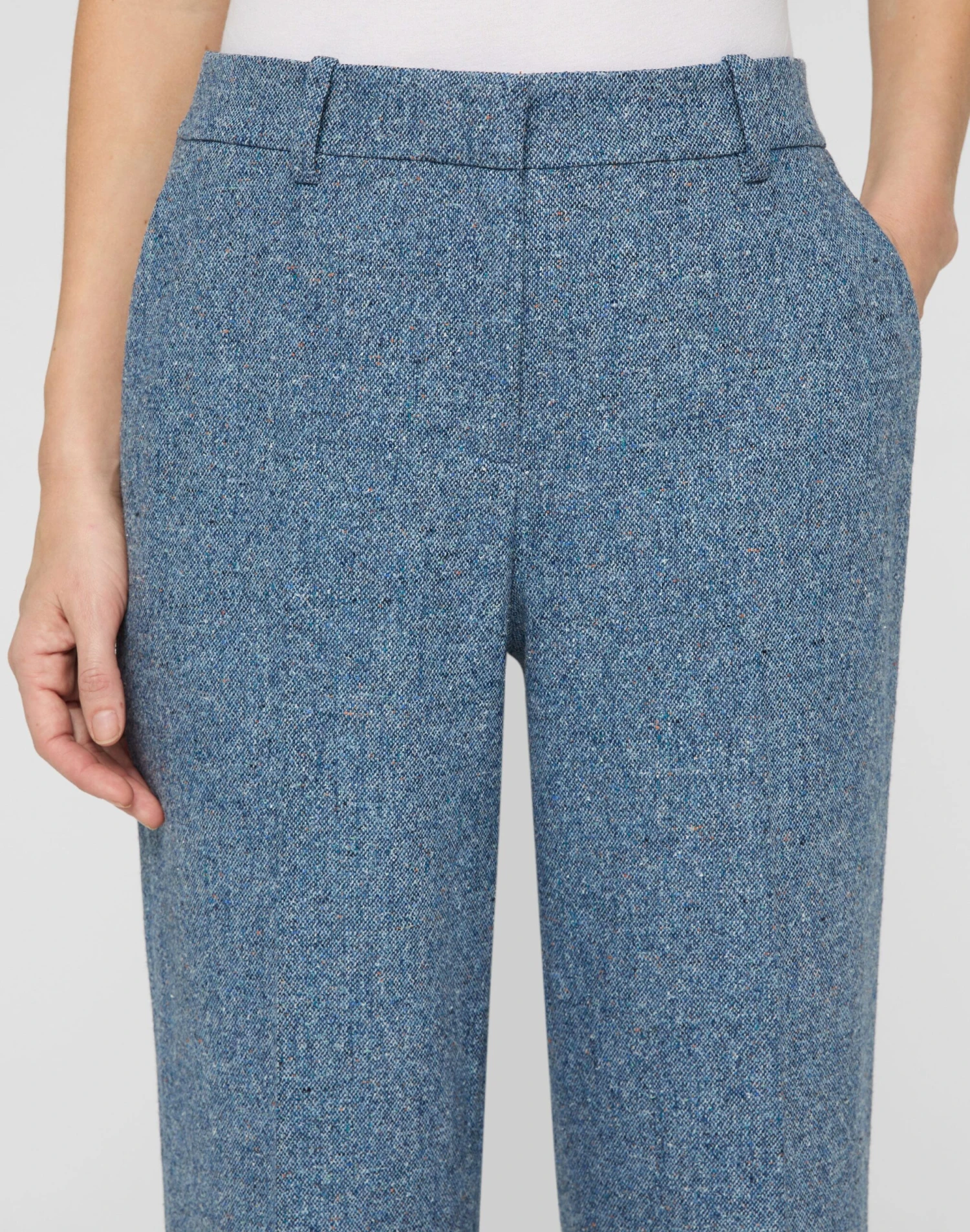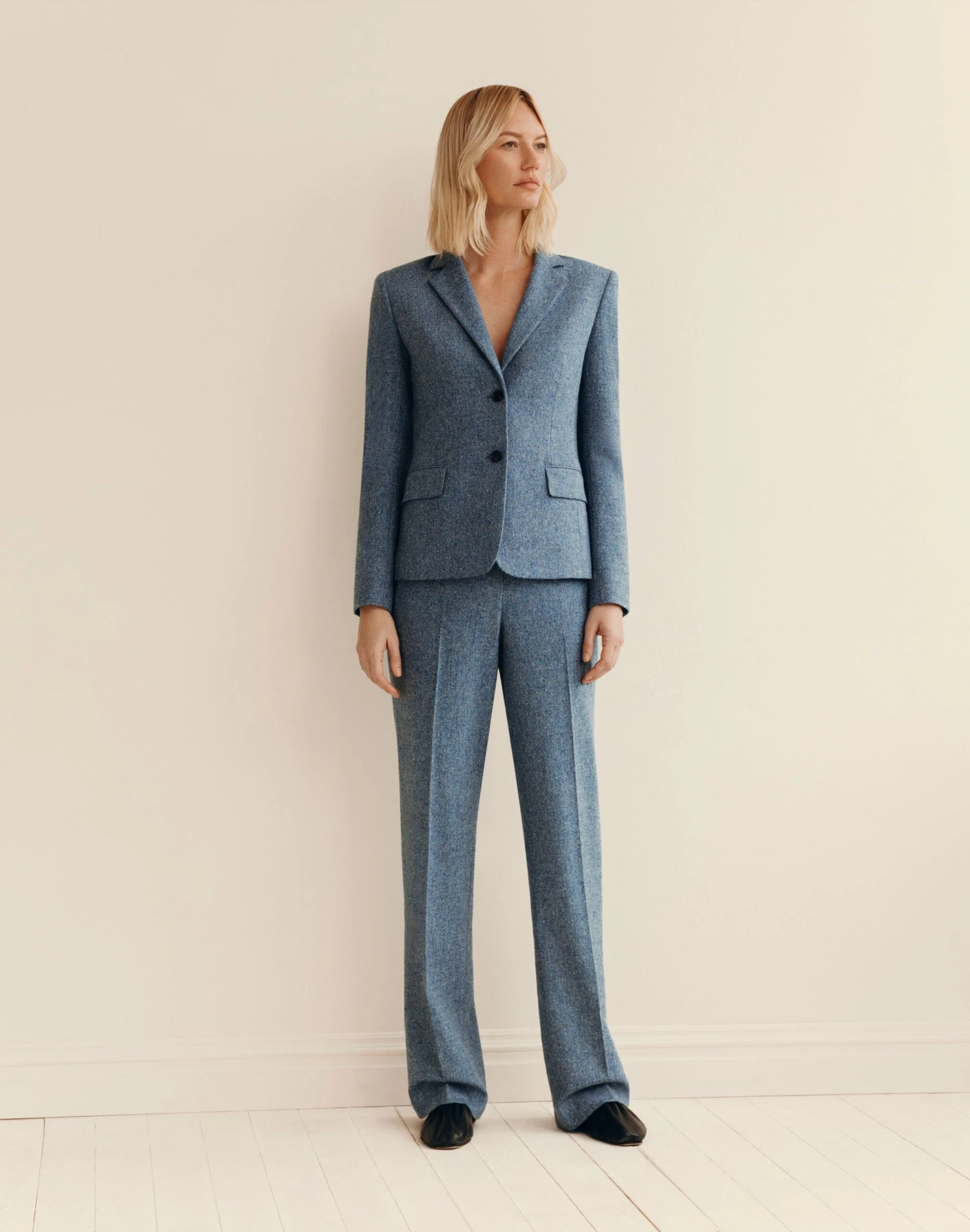 An L148 signature trouser silhouette, the Gate pant is tailored from color-flecked Italian Donegal tweed. Precision cut with a straight, full leg, this pair sits at the natural waist with slip pockets at the side. It’s suited for fall with the coordinating blazer.