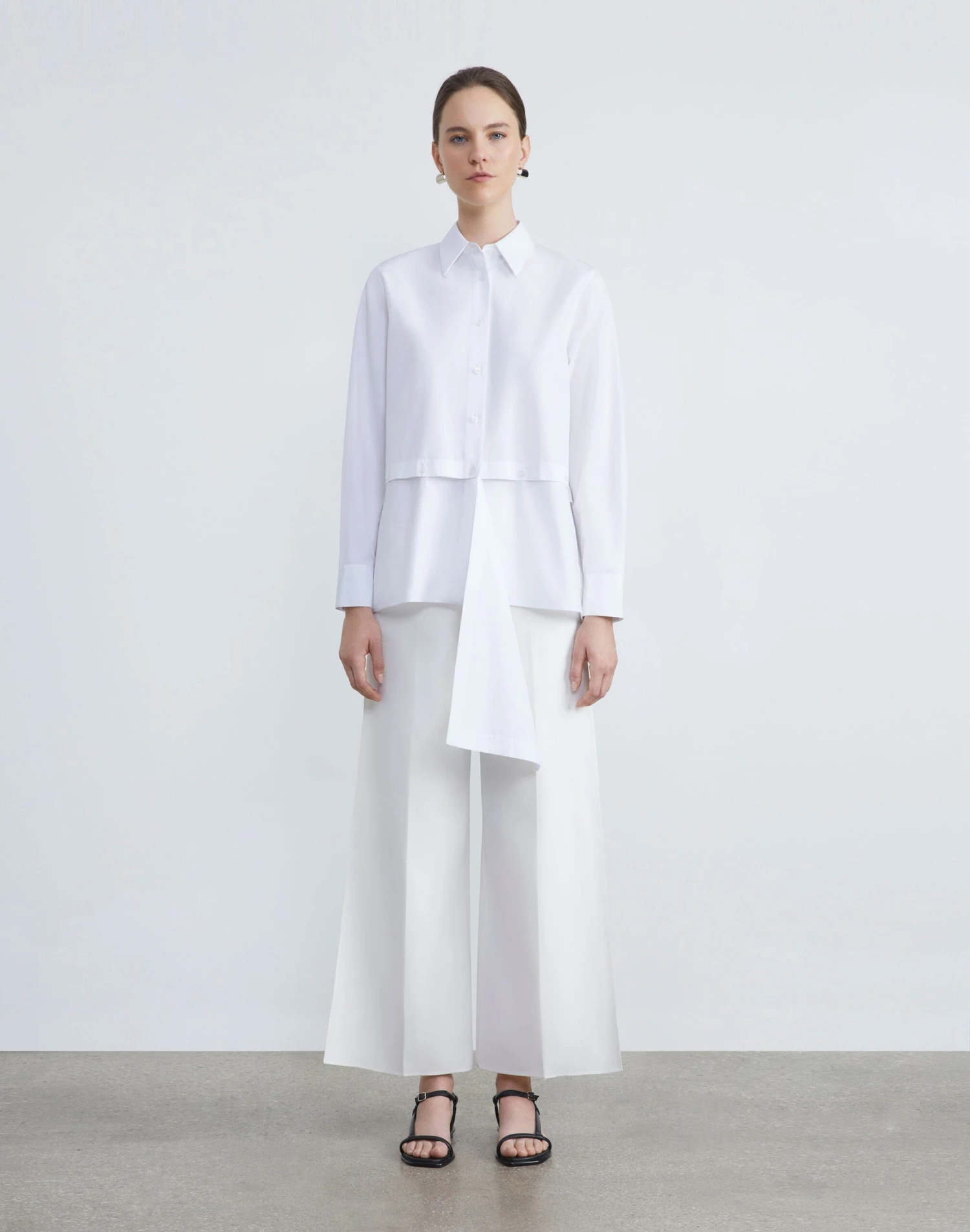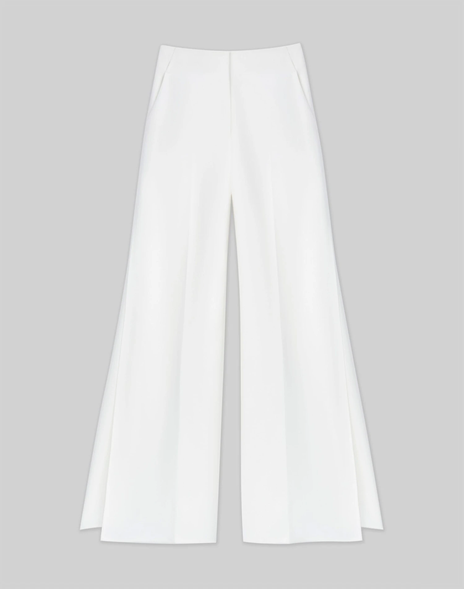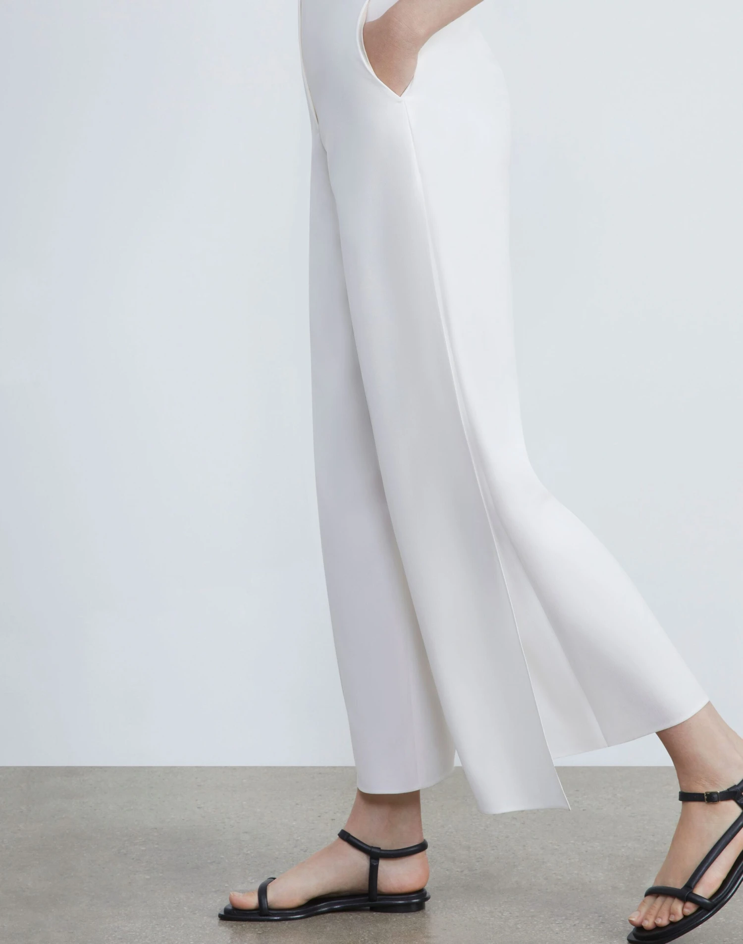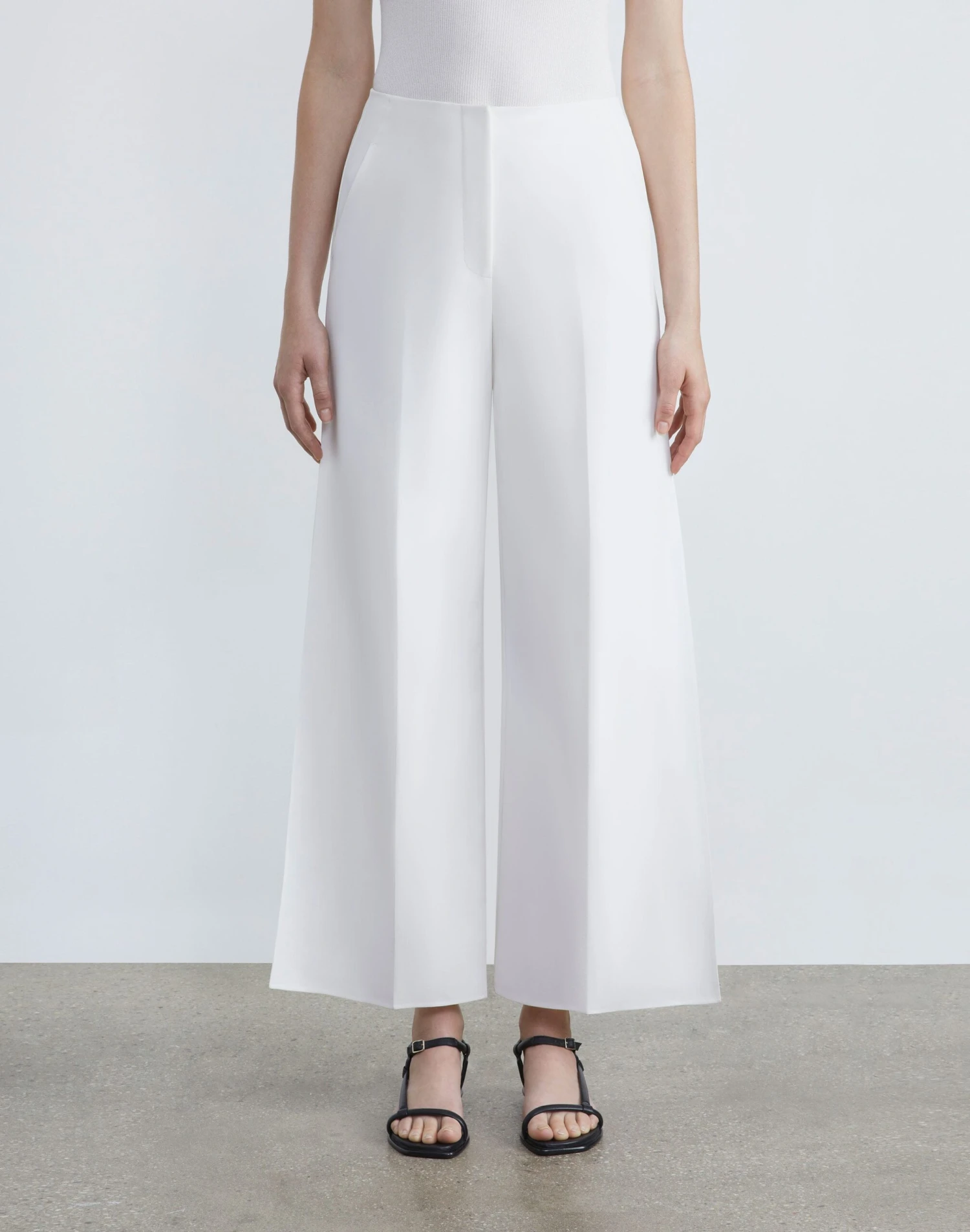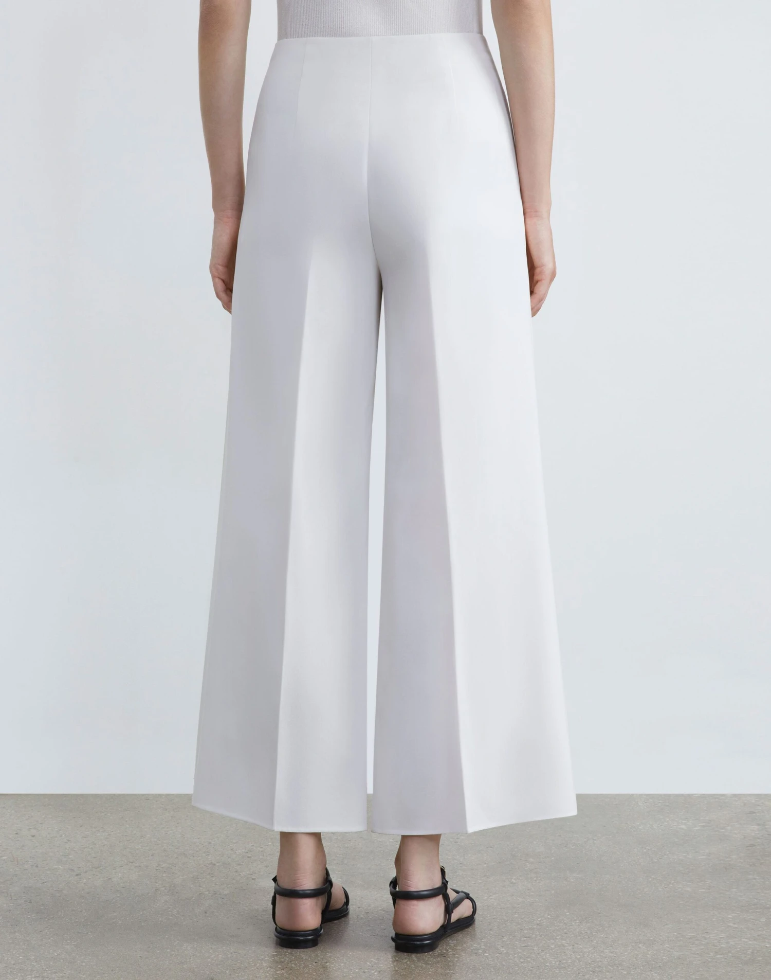 Modern design and precision tailoring combine in Pre-Fall 2023’s Franklin pant, crafted from texture-rich, luxuriously fluid House heritage Finesse Crepe with an overlay panel for added drape. The contemporary wide-leg silhouette features an elongating high rise, slant pockets and clean-lined ankle crop.