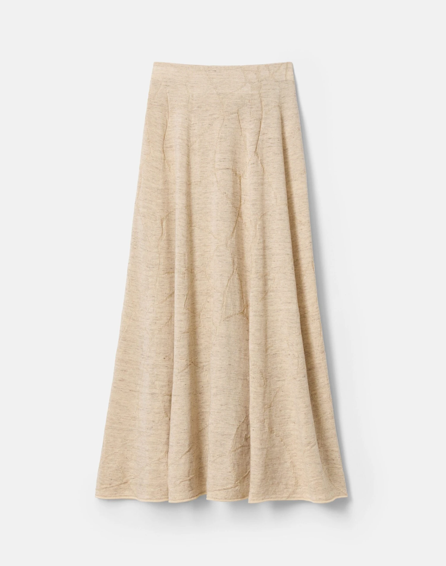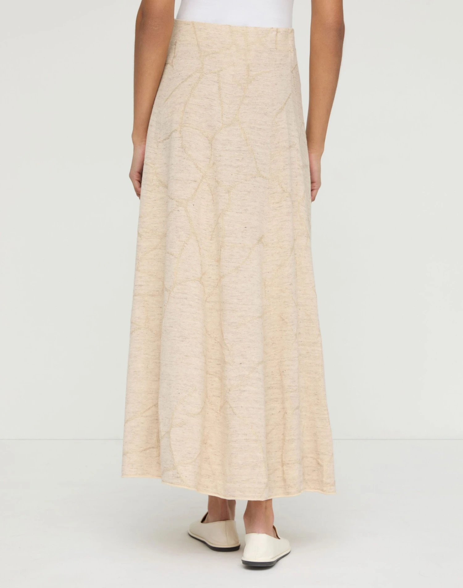 This maxi skirt celebrates the cracked impressions and organic beauty of ceramics in a textural jacquard knit of fine Italian linen and cotton yarns. Naturally light and infused with drapey volume, the sweeping ankle-length design pairs perfectly with the matching top.