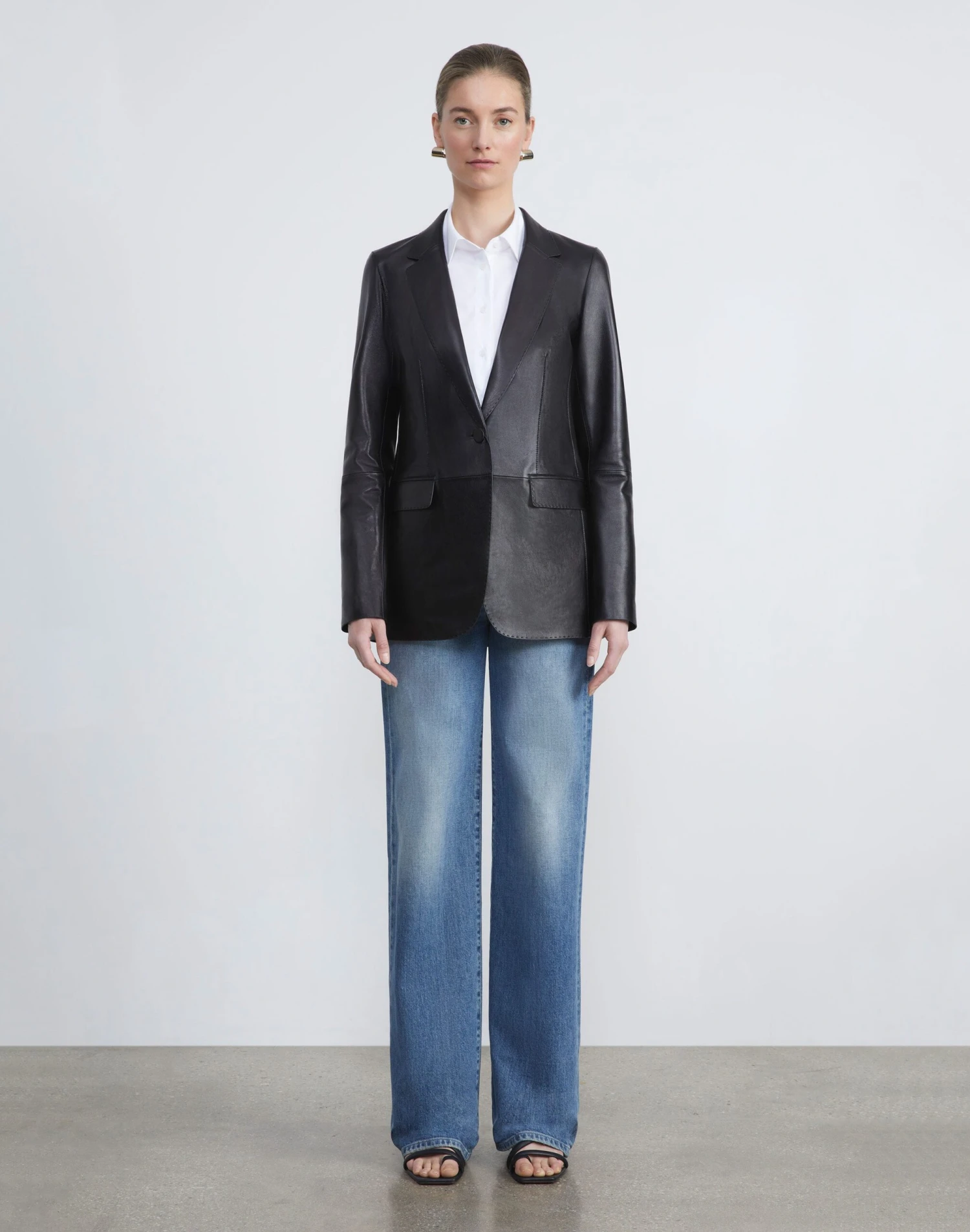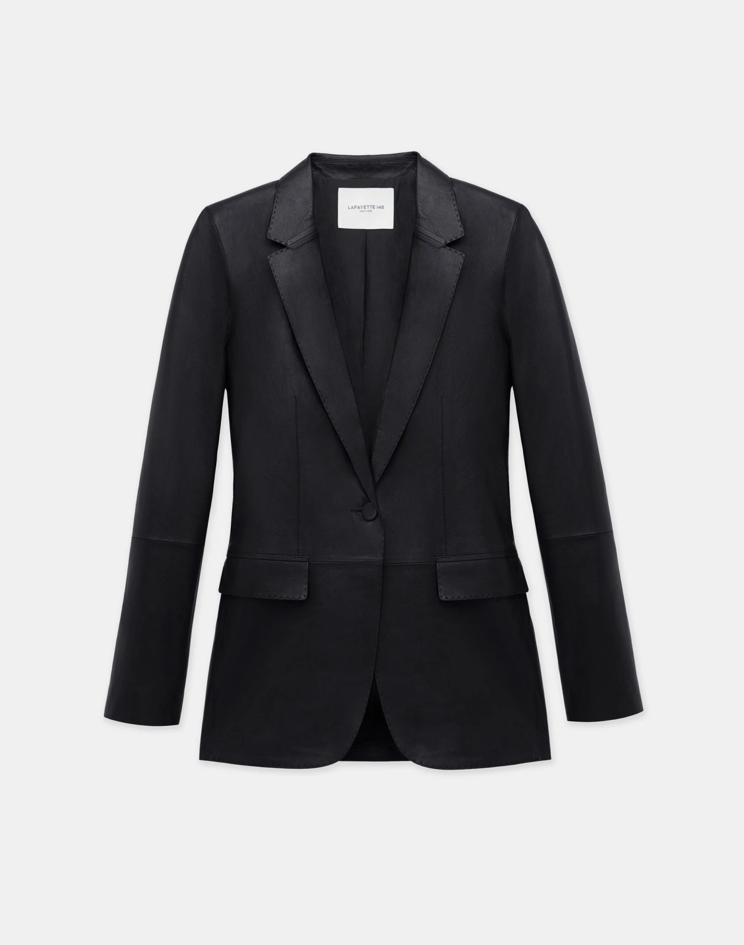 House-signature flawless construction and sartorial tailoring combine in this pared-back blazer, reimagined in luxurious Italian nappa leather. The straight silhouette is traced with artisanal topstitching and defined by soft shoulders, structural darting and single-button closure.
