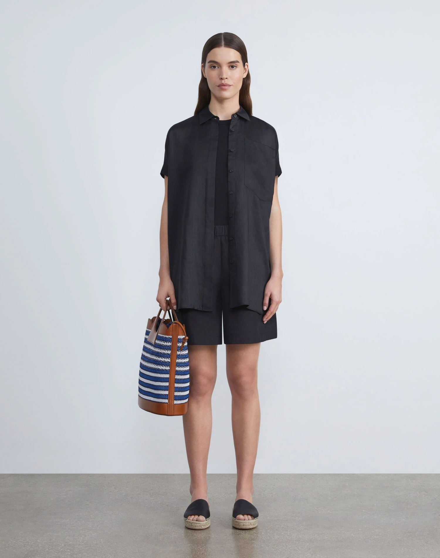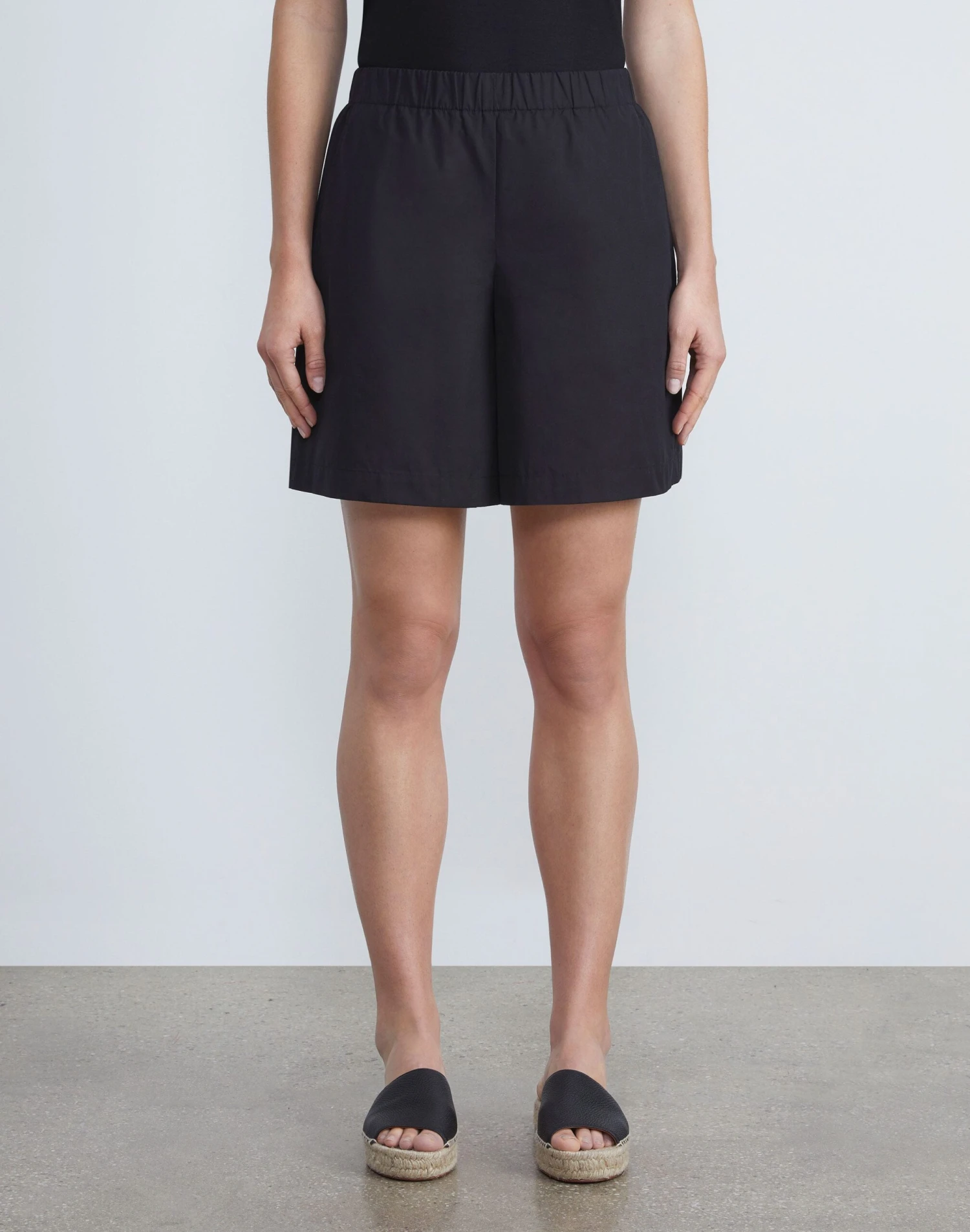 Lightweight, packable and polished, the Lafayette 148 Riverside short is a warm-weather favorite in crisp yet softly structured, organic cotton poplin. With an easy wide-leg fit and effortless elasticized waistband, it’s the perfect pair for home or for travel.