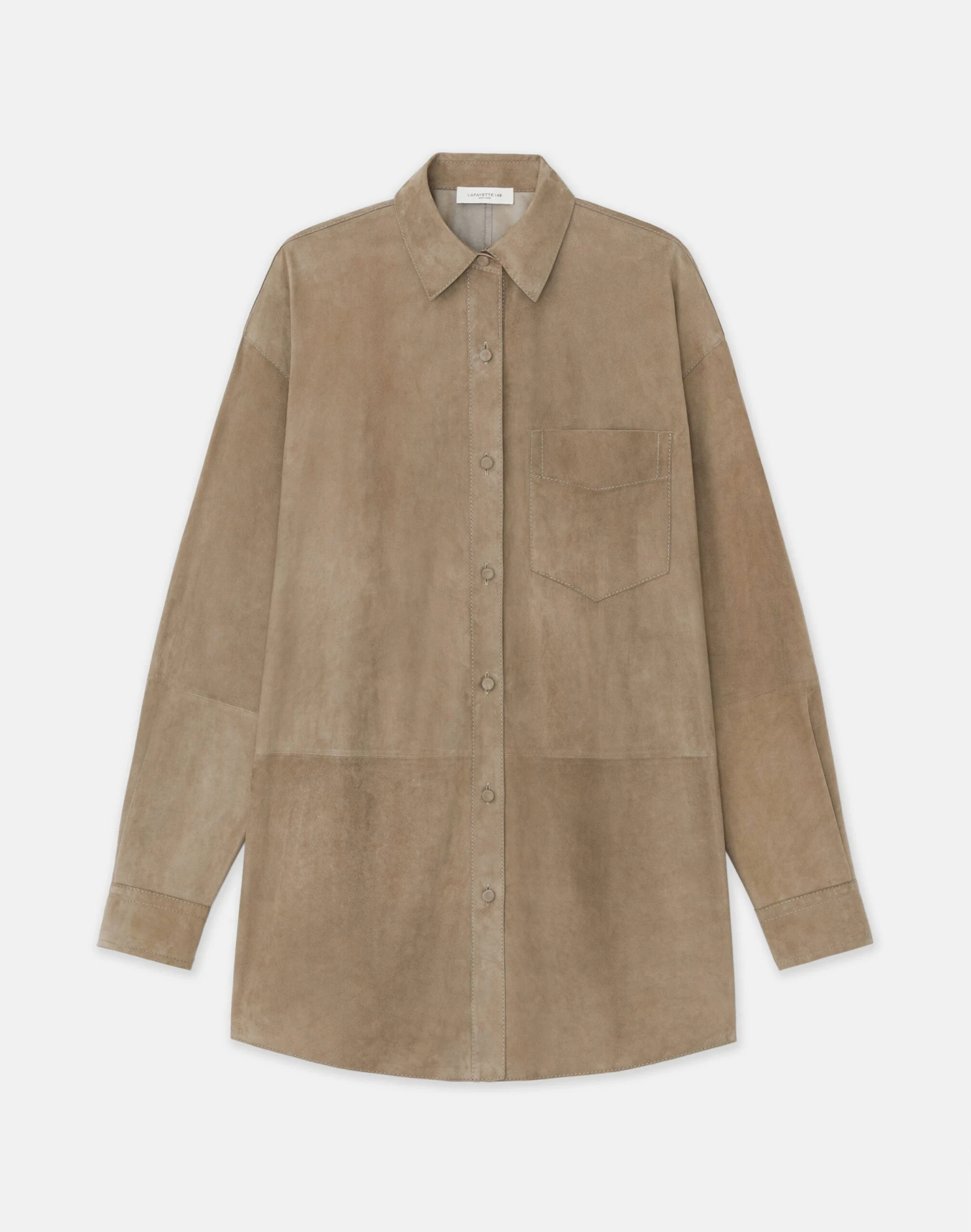 Signature design imbued with luxury, Lafayette 148’s boyfriend shirt is exceptionally soft and light rendered in paperfine Italian lambsuede. It’s cut to an oversized shape with drop shoulders and extended shirttail hem, while leather-covered buttons and hand-painted edges highlight the House’s artisanal craftsmanship.
