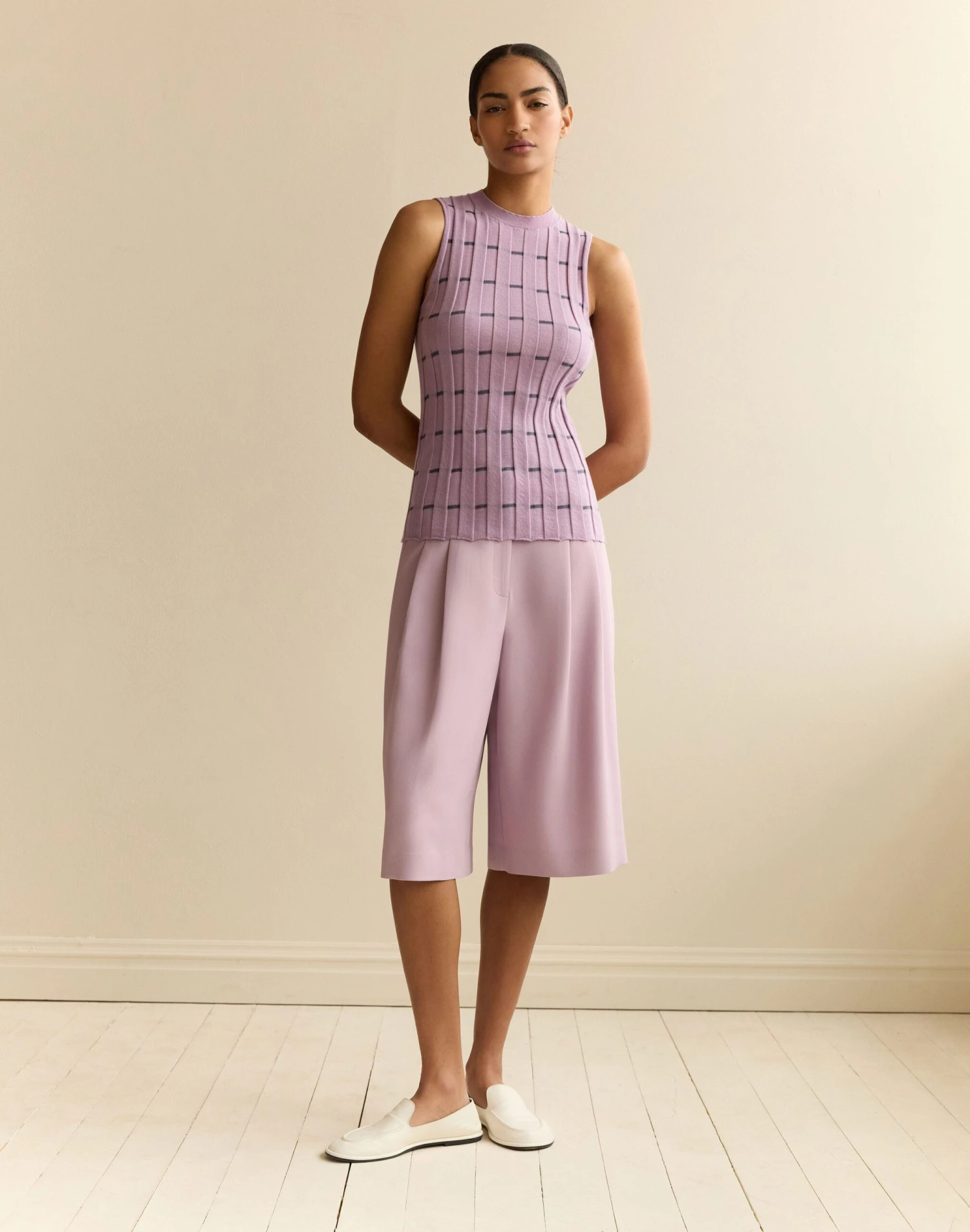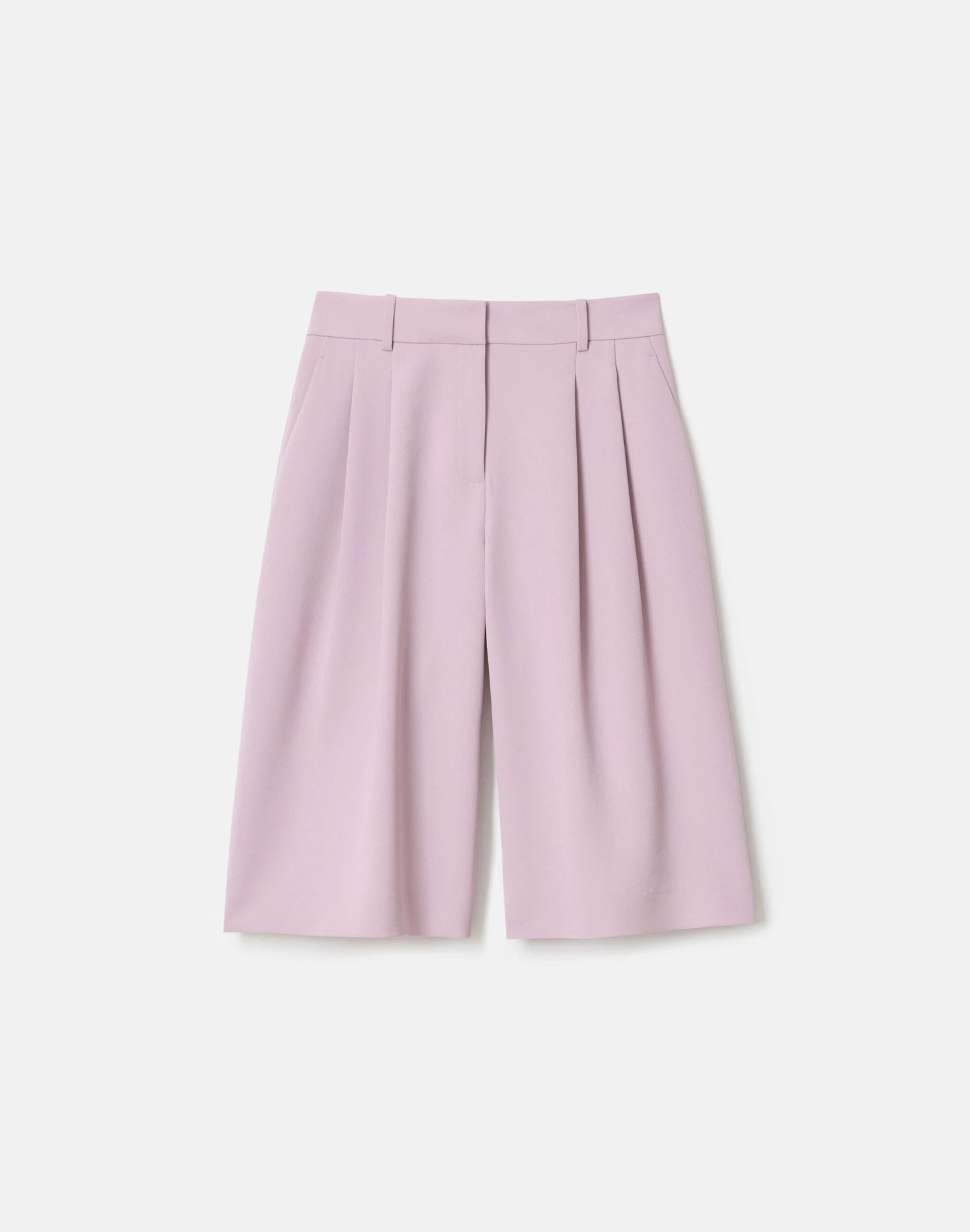 Tailored for ease in responsible Finesse Crepe—a signature fabric prized for its lightness, tactility and structured drape, the high-waist Sutton short is defined by a wide-leg silhouette with a pleated front and knee-grazing length.