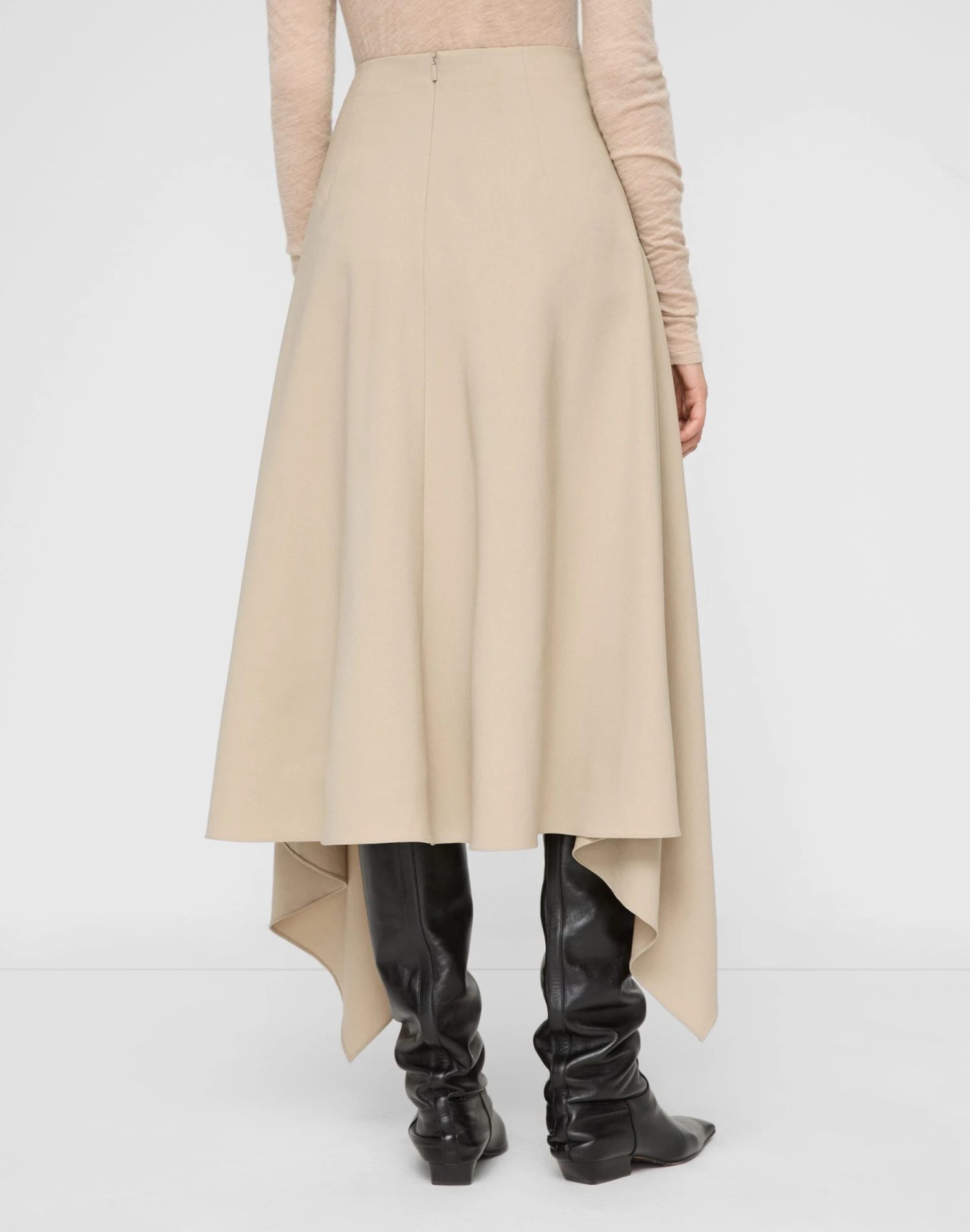 Crafted from responsibly sourced Italian Merino wool chosen for its natural breathability and inherent resilience, Lafayette 148’s signature suiting fabric is reinterpreted with unexpected femininity in this draped handkerchief skirt. The flared silhouette and asymmetric hemline add fluid movement.