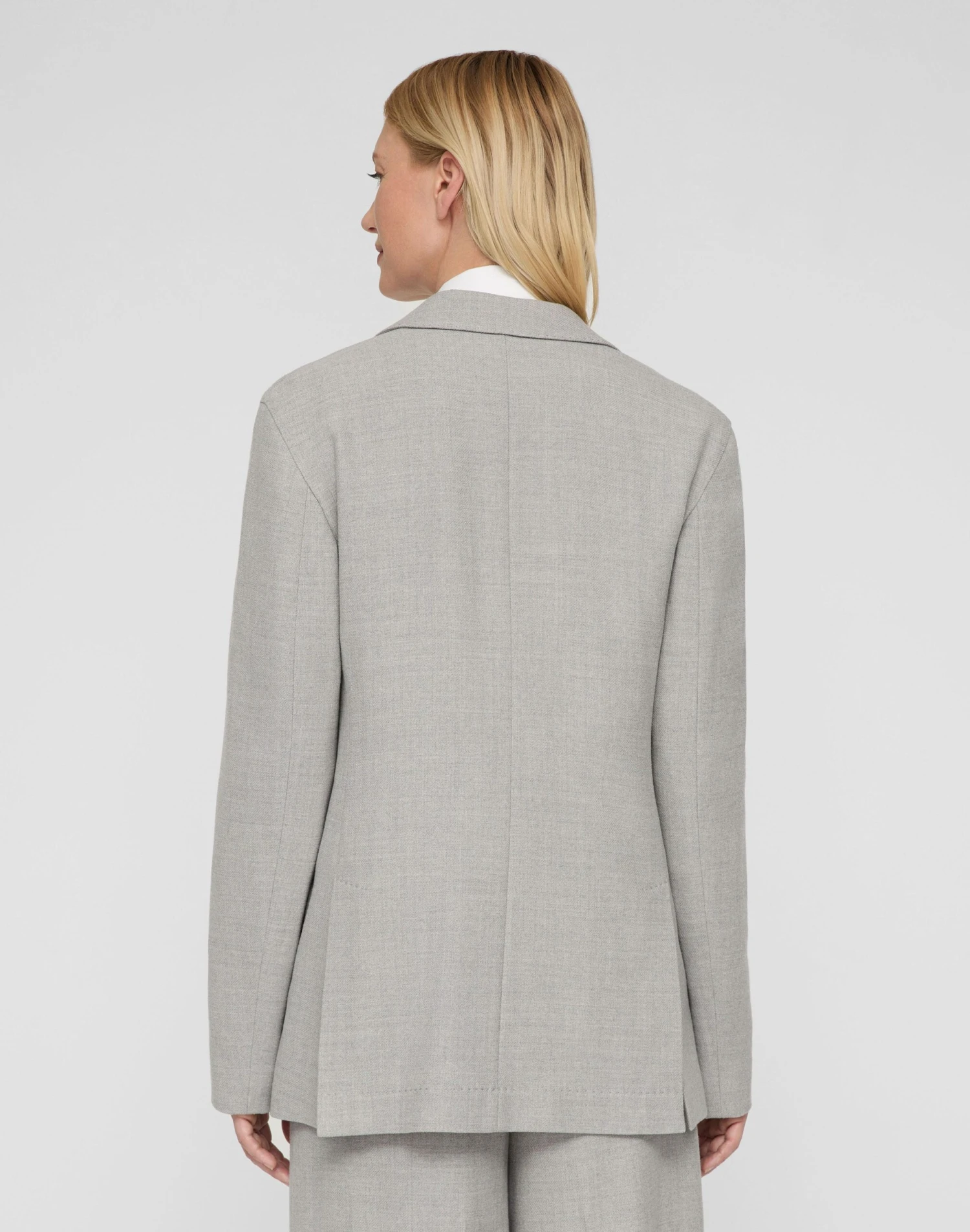 Relaxed yet refined tailoring defines the Neapolitan jacket, rendered in virgin wool with a hint of stretch—an exceptionally soft, lightweight and breathable fabric responsibly sourced from a renowned Italian mill. Its elongated, single-button silhouette is eased by dropped shoulders and finished with a curved cutaway hem and symmetrical back vents.