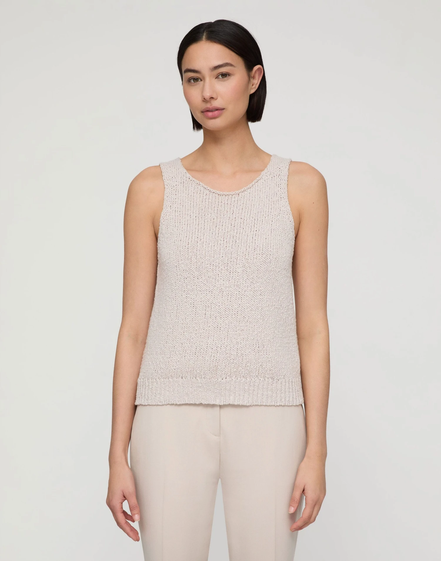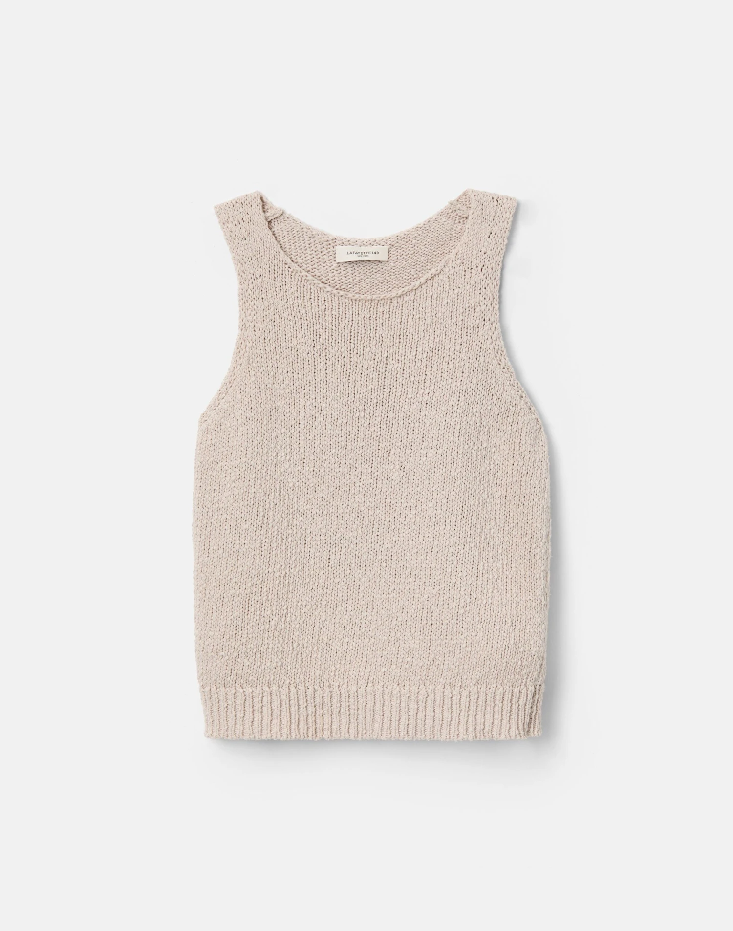 Ultra-light, soft and airy, this textural tank top is knitted in slub cotton, offering a cozy feel with weightless finish. The slim design features contoured shoulders and signature rolled hems.