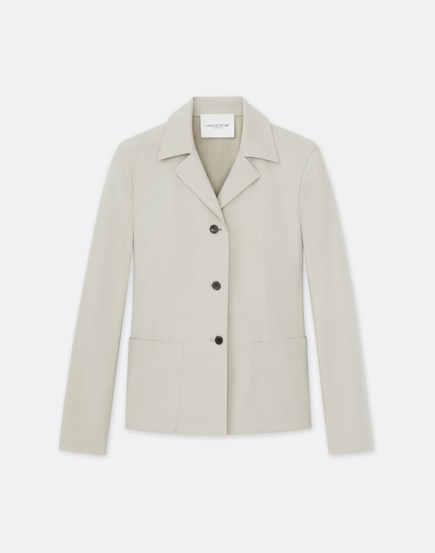 Flawless construction fuses with the House’s utility codes in this patch pocket blazer, expertly tailored from technical stretch twill with a smooth finish and resilient shape. Sculptural seaming and precise darting define the fitted design, fastened by a trio of buttons down the front.