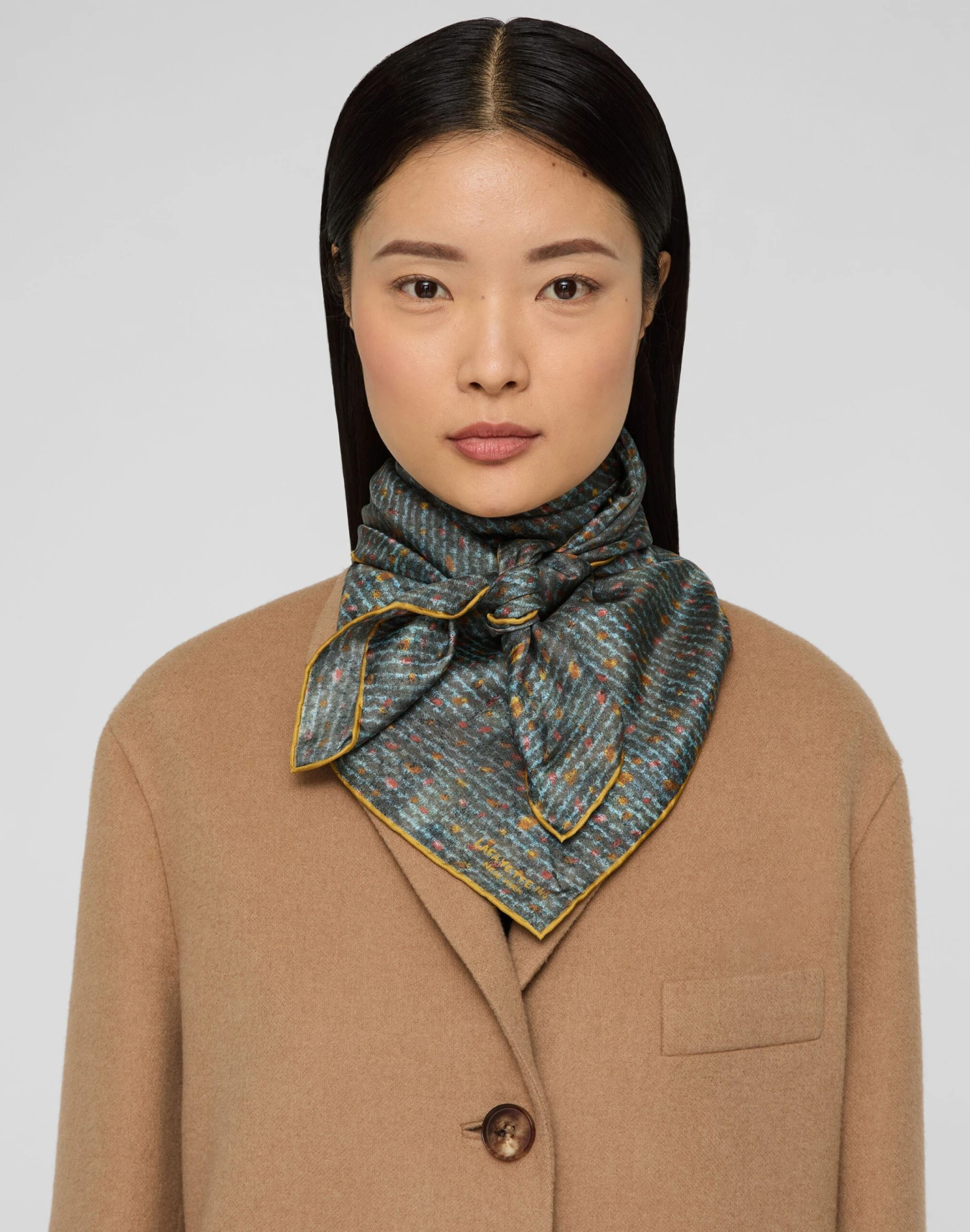 Crafted in Italy, this printed scarf features the collection’s dimensional Textile artwork, rendered on pure silk twill. Hand-rolled edges frame the square shape, designed to fold, knot or tie with ease.