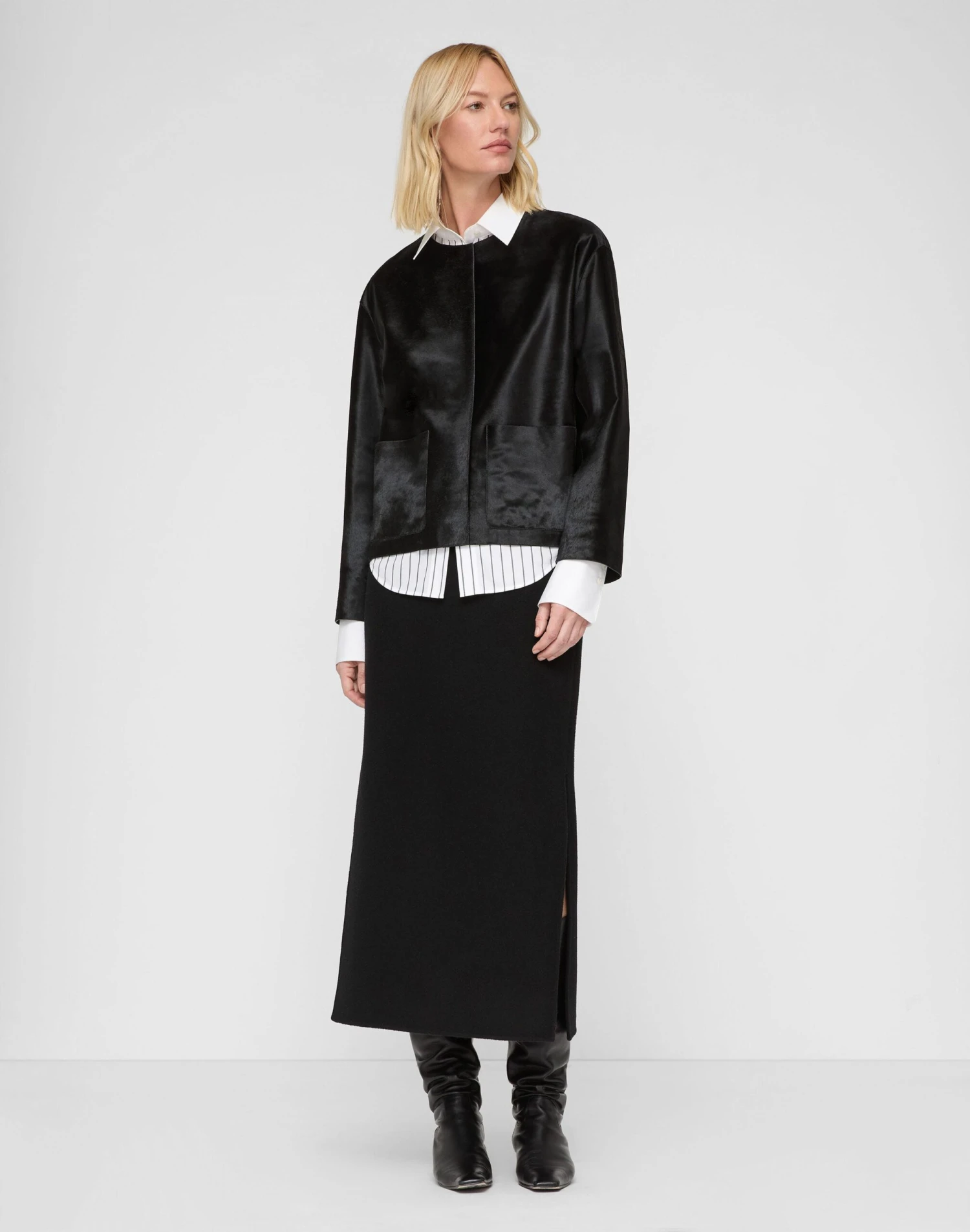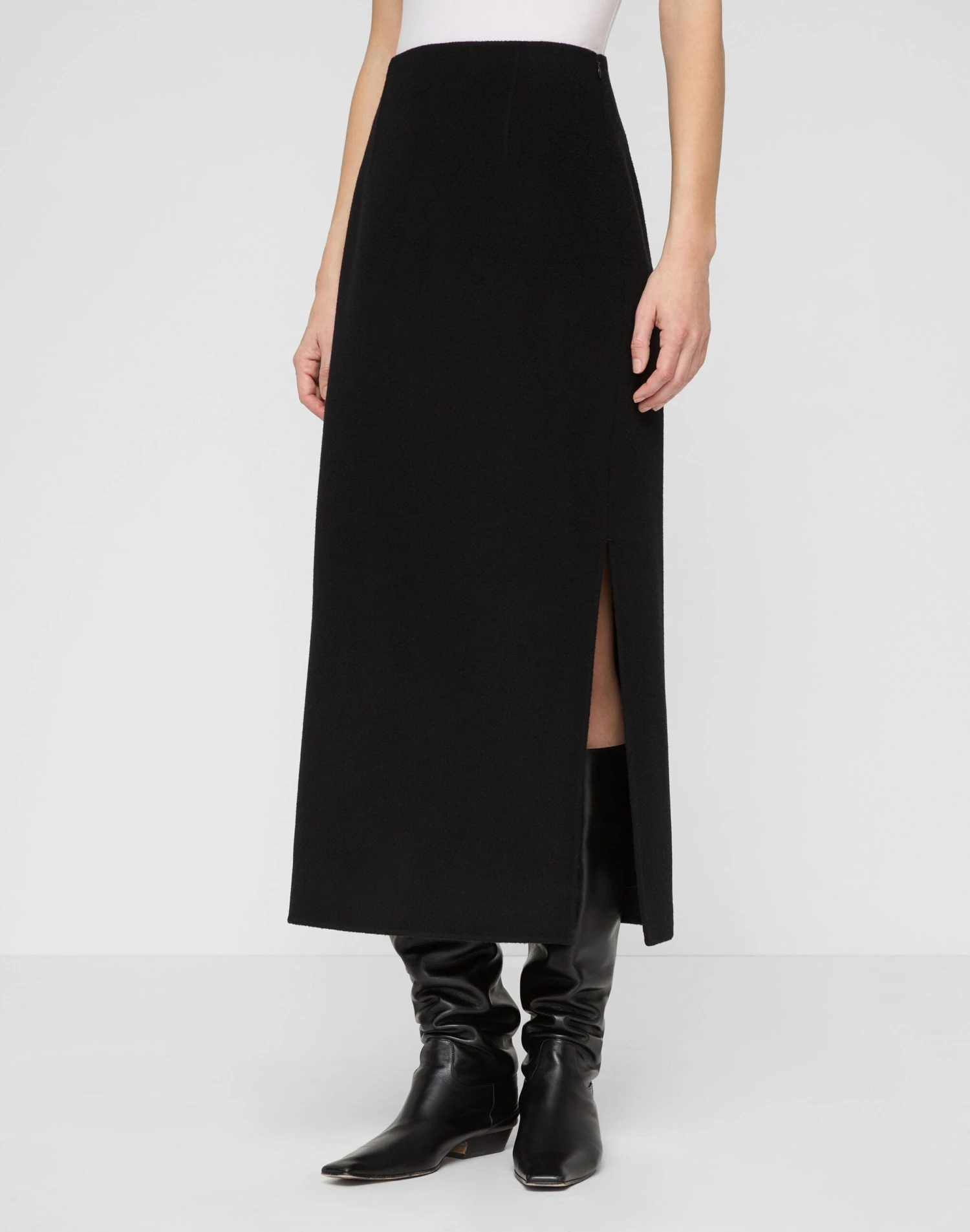 Side slits and a contorting high-waisted design give this midi pencil skirt ease of movement. Crafted from wool-cashmere, it features a double-face finish and soft, structural drape.
