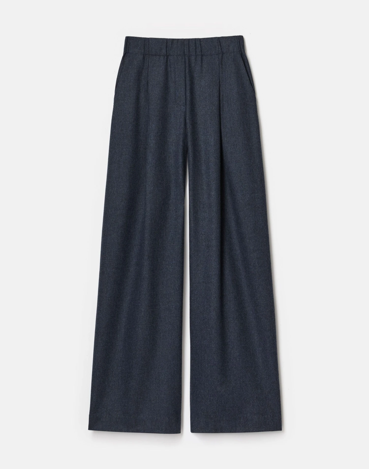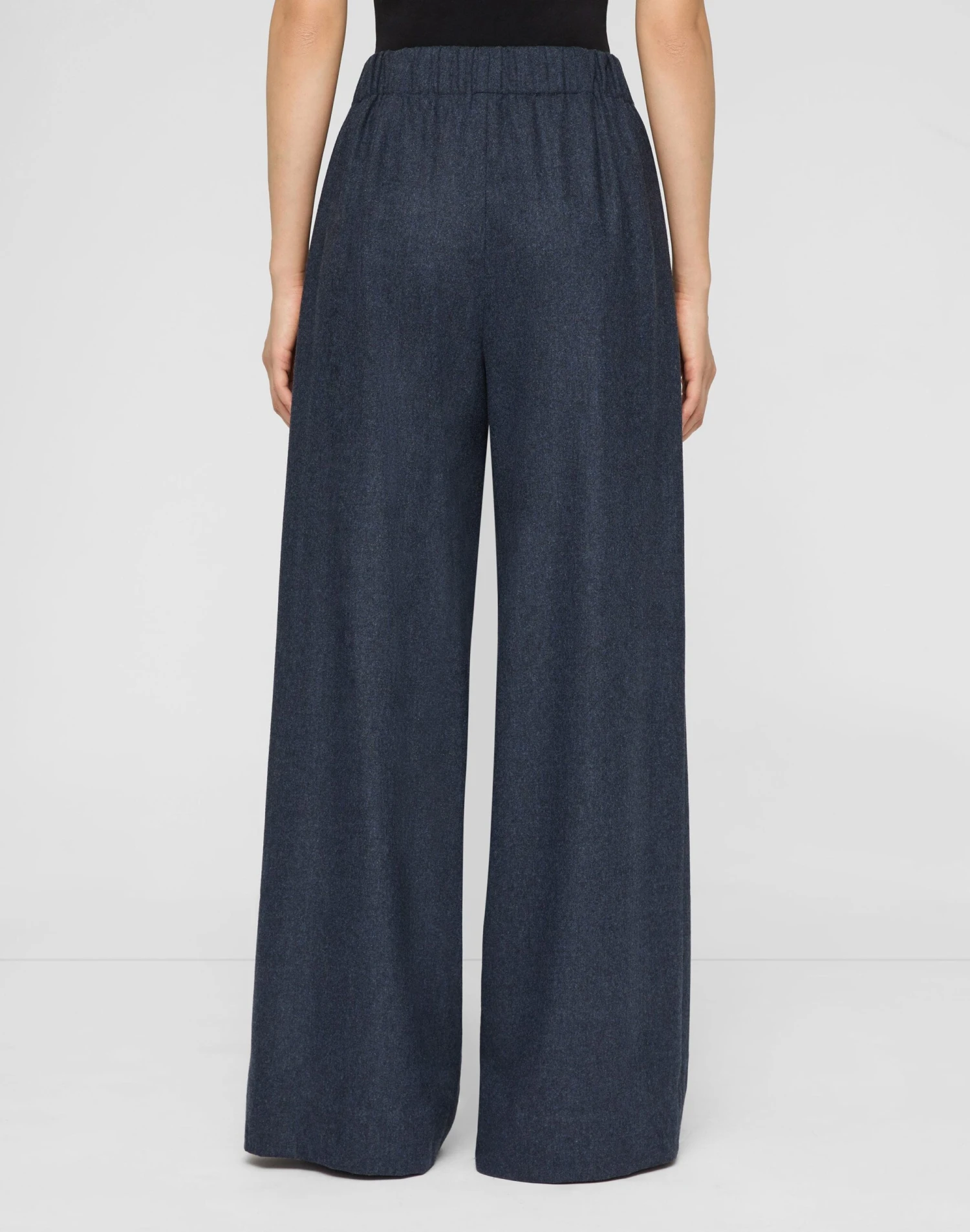 The Astor pant features soft pleats that fall into a fluid, wide-leg silhouette, paired with a stretch-infused waistband for unexpected ease. Tailored from lightweight brushed flannel in the finest Merino wool-cashmere, it offers an ultra-soft hand feel and effortless drape.