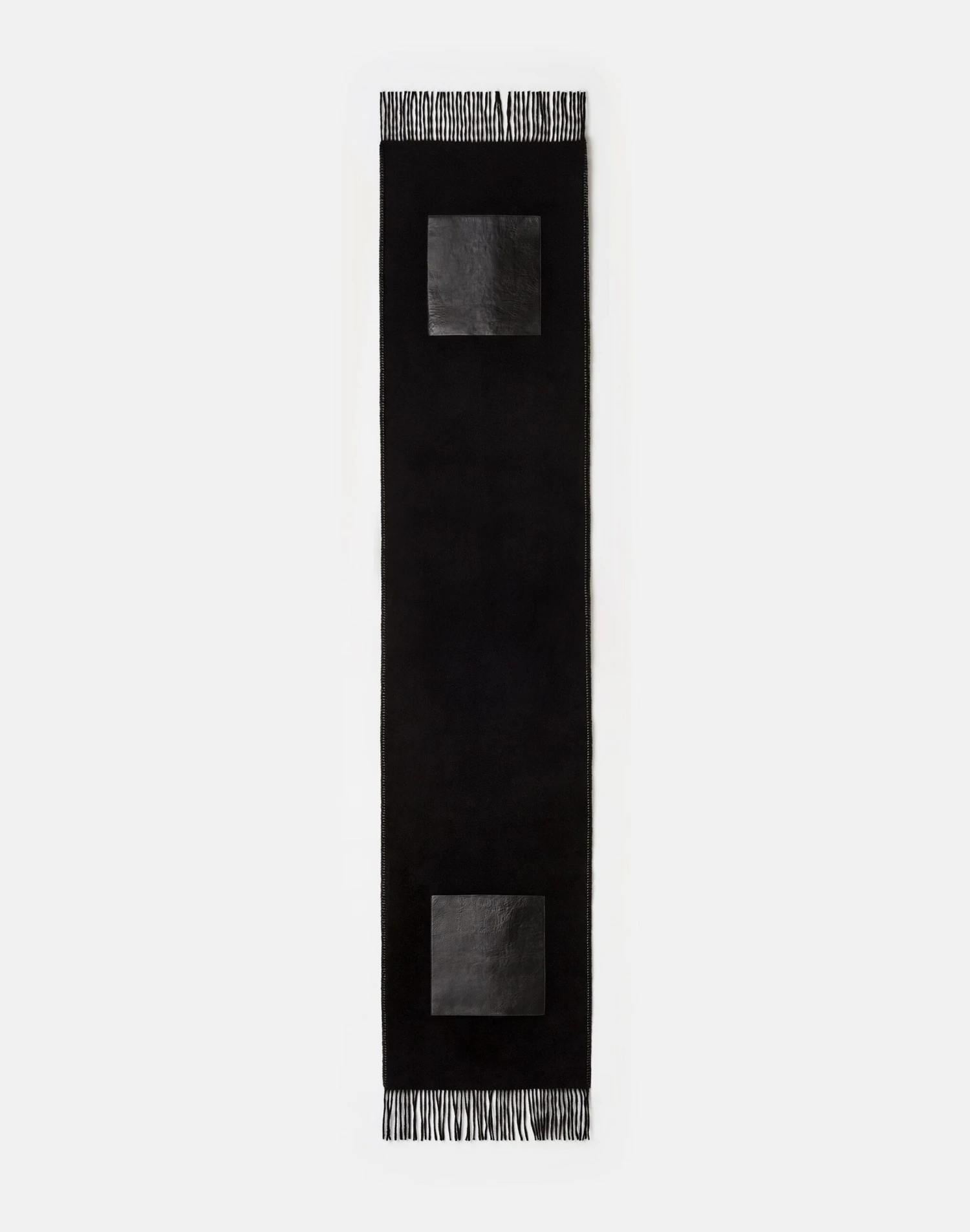 Lafayette 148’s favorite pocket shawl features supple leather at the oversized patch pockets and hand-whipstitched edging. Crafted from naturally warm and soft double-face wool-cashmere, it’s cut in a wide, elongated shape with extended fringe.