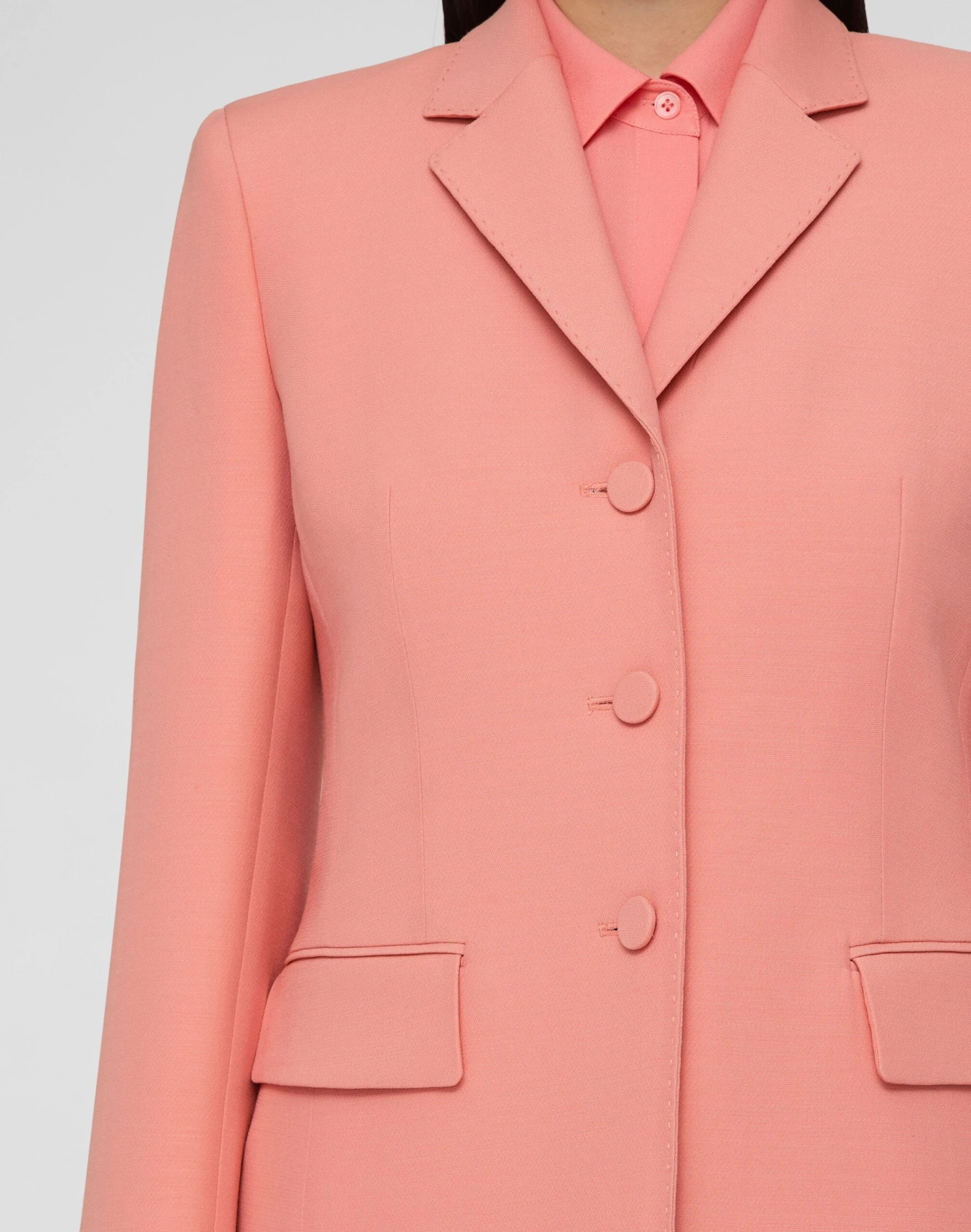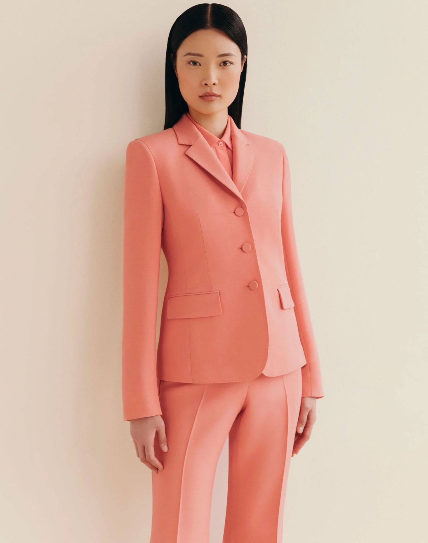 Lafayette 148’s signature Academy blazer reimagines the classic tailoring of collegiate uniforms with modern femininity. Softly structured in wool-silk crepe, the fitted silhouette is defined by strong shoulders, slim lapels and a contouring nipped-in waist.